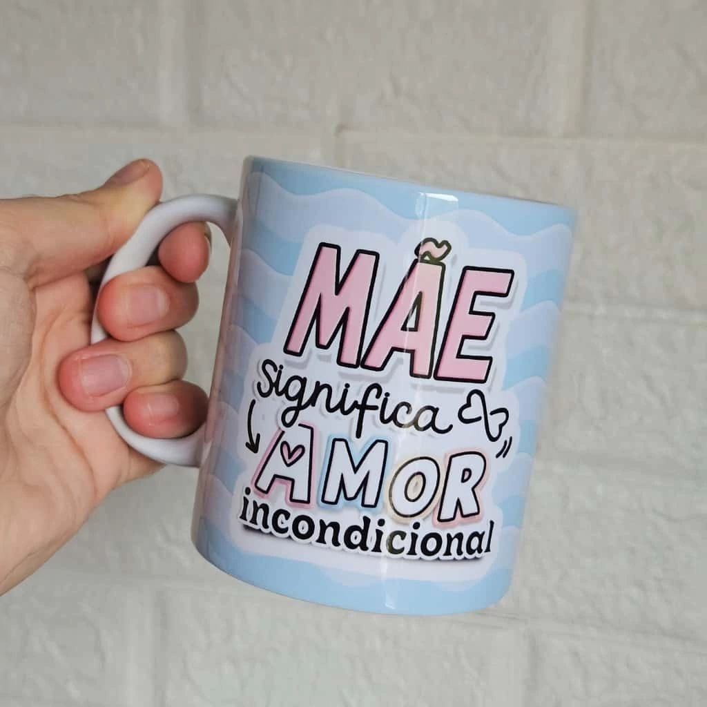 Esta caneca está em PRONTA ENTREGA! Perfeita para um presente de última hora, ela será postada em até 24h úteis após a confirmação do pagamento. Com a mensagem emocionante "Mãe significa Amor Incondicional", esta caneca é o presente ideal para o Dia das Mães, aniversários ou para qualquer momento em que você queira expressar sua gratidão e afeto.