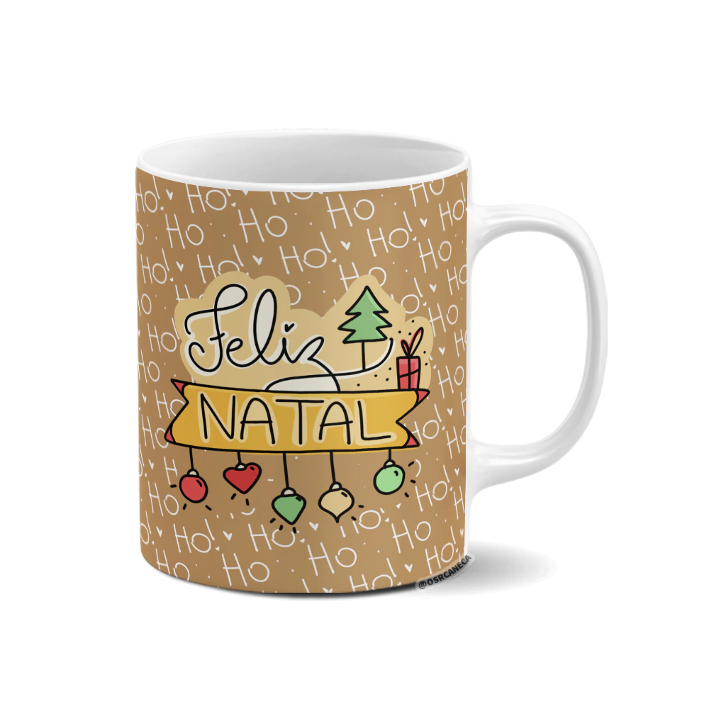 Caneca de cerâmica branca personalizada - Tema: Natal